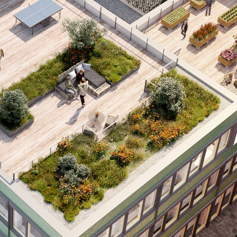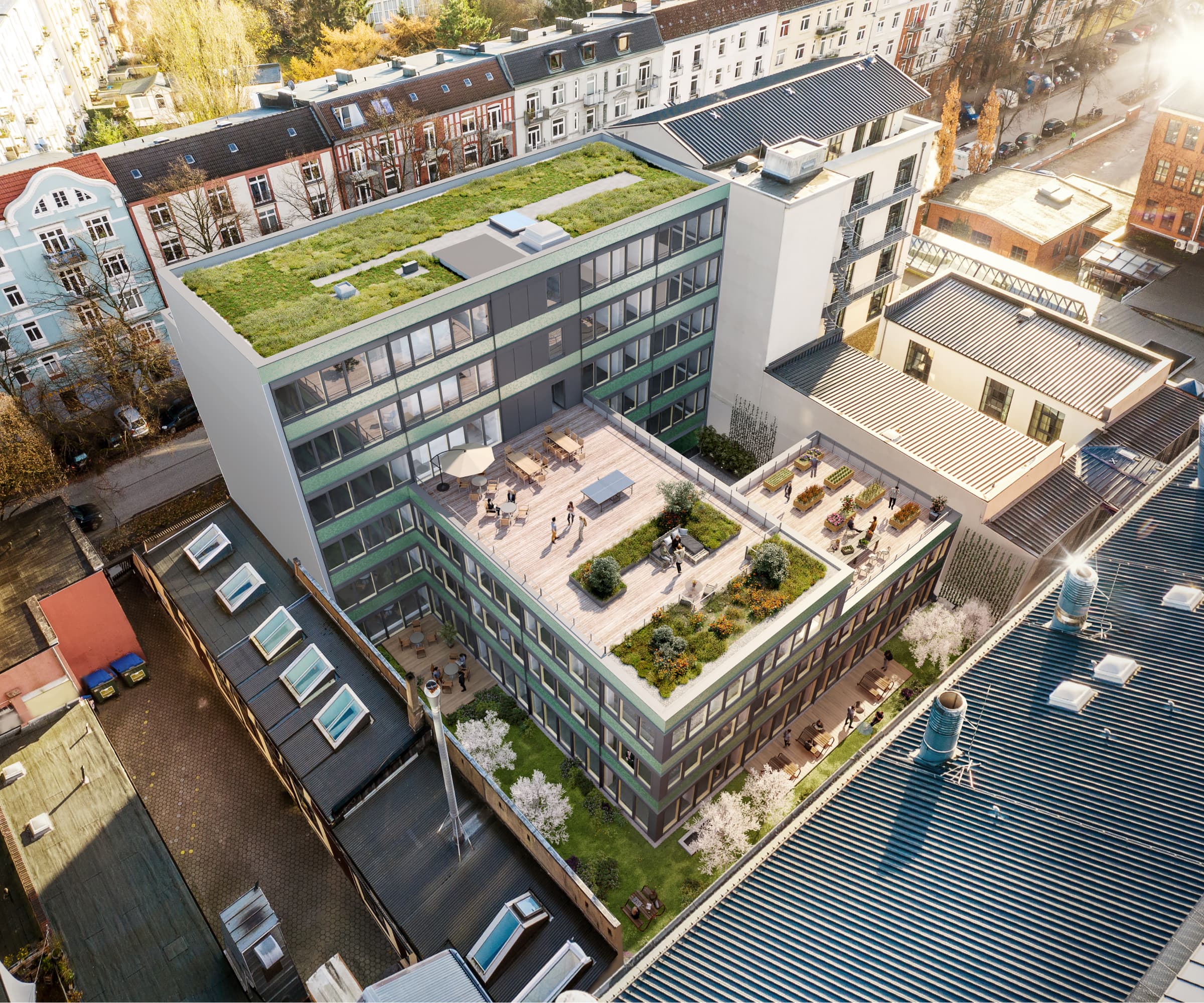 Und nicht zuletzt machen die Grünflächen, Pflanzen, Hecken, Büsche und Bäume nicht nur das Timber Office, sondern damit auch Hamburg zu einer noch grüneren Stadt. Die Bienen freuen sich jedenfalls schon.